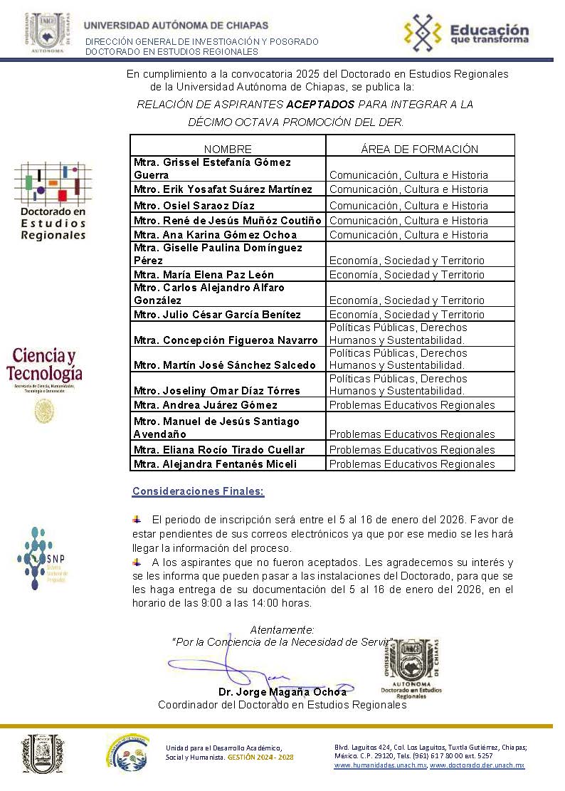 LISTA DE ACEPTADOS A LA 18a PROMOCIÓN 2025